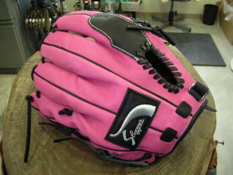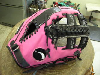 W−21ウェブを装着致しました。今回の限定グラブはピンクを多用しま
