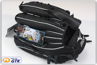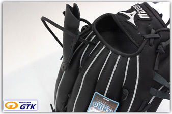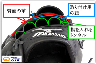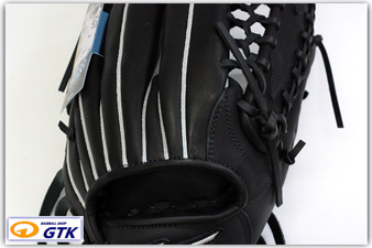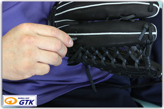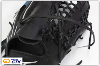 親指側。結び目の多いイチローモデルは何の違和感も無く装着出来ました。 |