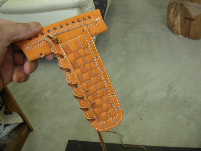 最後に小指の指先からきたヒモをウェブ上部に巻き巻きしてW−16取り付け完成です。 |