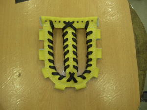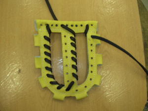 | 左右対称にアミアミして結んで完成です。結構簡単に出来ますのでお試し下さい。またこの方法は一般的なW−3のヒモの通し方です、まだまだいろんなパターンのヒモの通し方の可能性を秘めたウェブだと思いますので皆様で新しい編み方を完成させて下さい。 |