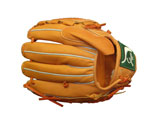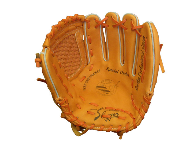 メーカーオフィシャル限定グラブです。基本形はKSN−L7Sです。本体にKSオレンジを使い、皮ヒモ・ハミ出しはオレンジ、ヘリ皮にホワイトを使いました。
